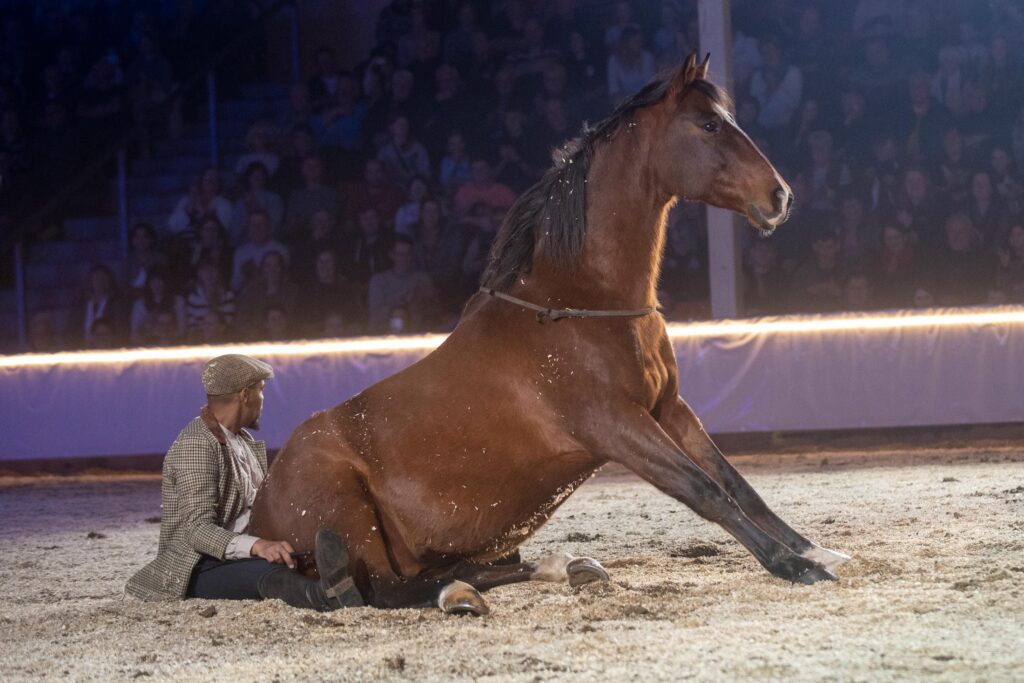 „Manni“ macht, was er will – und das mit Stil! Gemeinsam mit Marcello bringt das ungleiche Duo die Manege zum Lachen und zeigt, dass echtes Vertrauen auch jede Menge Humor verträgt.